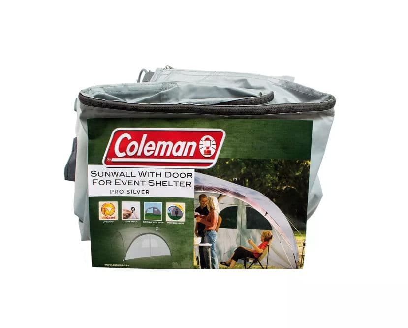 The Coleman Event Shelter Pro XL Sunwall And Door is a quick to attach accessory that creates a wall with a door providing privacy and weather protection. The colour of the sunwall is Silver.