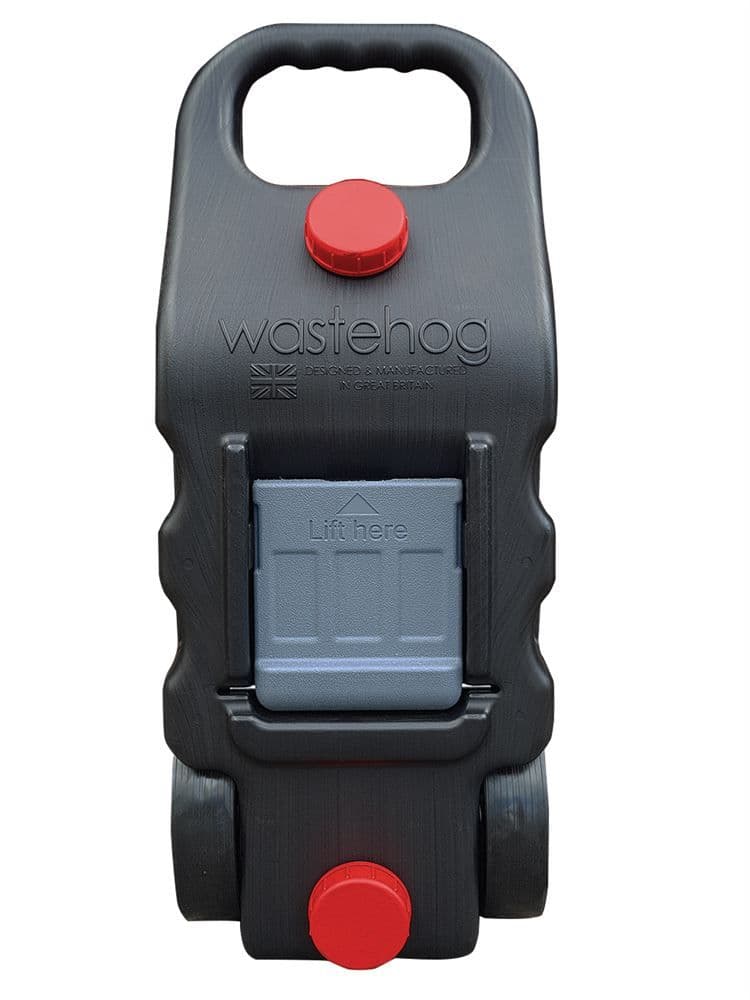 The Waste Hog features a fold-down carrying shelf allowing the container to also be used as a trolley for a toilet waste tank, full bin liners etc.